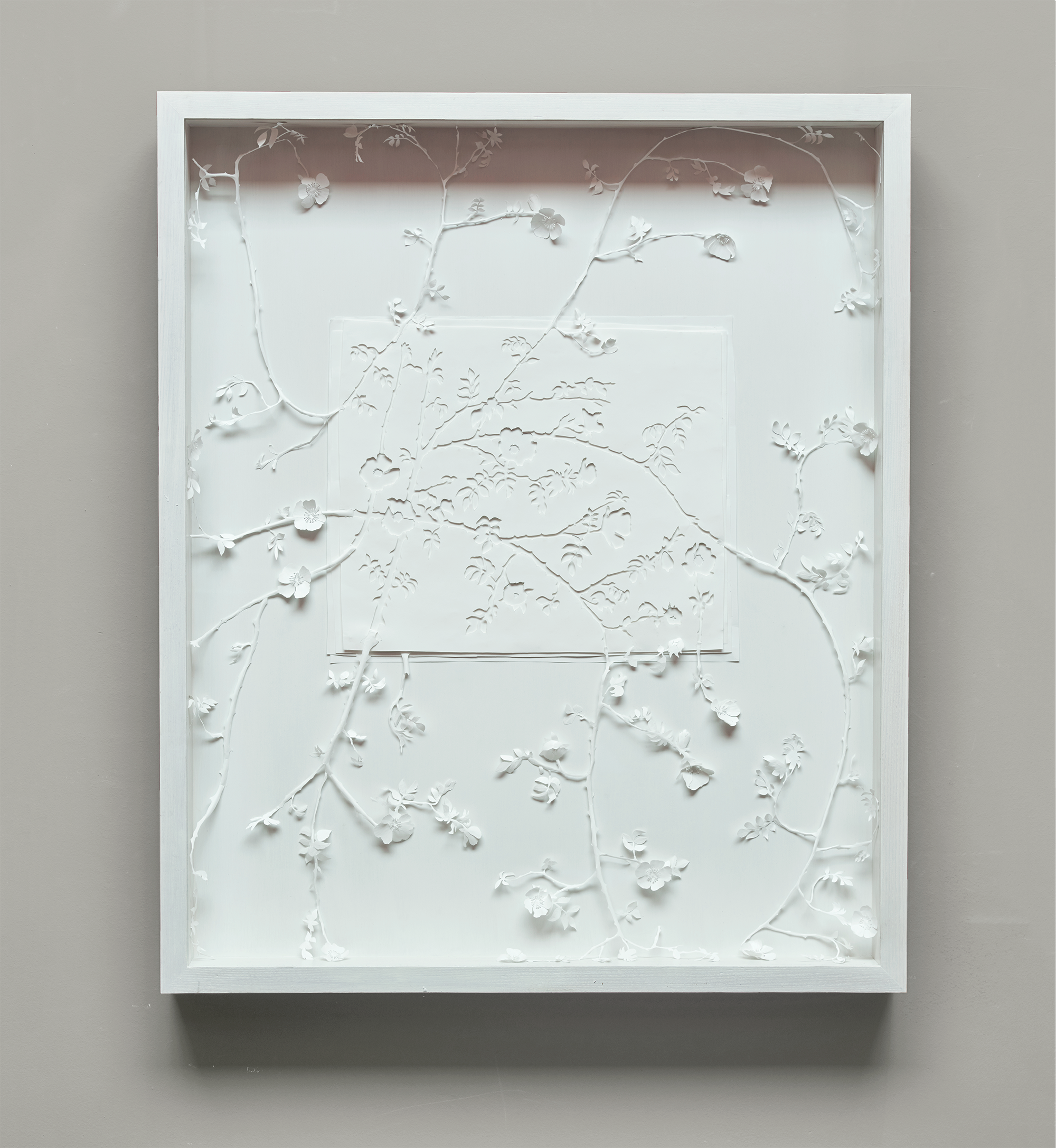Wild white roses, 120 x 100 x 13 cm. 90.000 DKK (12.100 EUR)