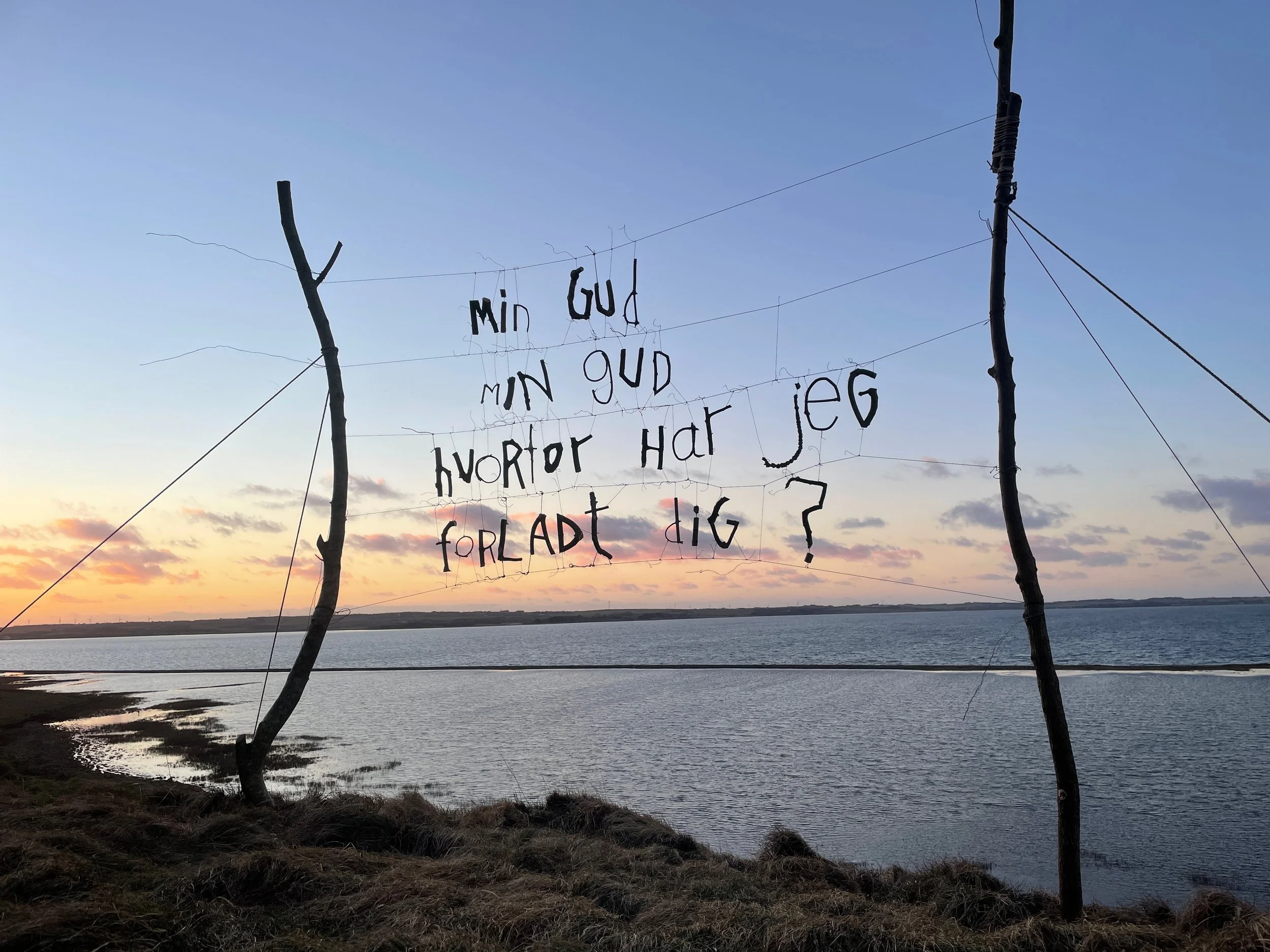 The location - completely isolated on a high point in the large and beautiful nature with a view of the Fjord, can both be a reference to the loneliness that Jesus' original cry was an expression of, but it can also be that in the great nature is precisely the place to seek and perhaps find God.