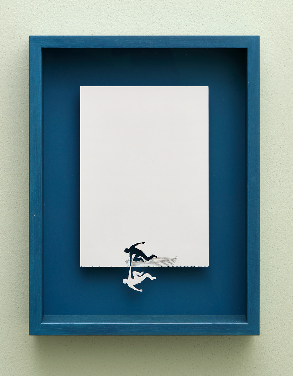 Acid free paper, A4, 160 g,glue, pencil, acrylic paint, painted oak frame.