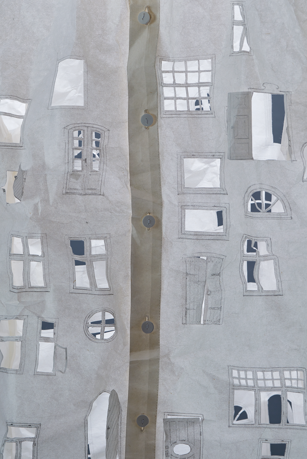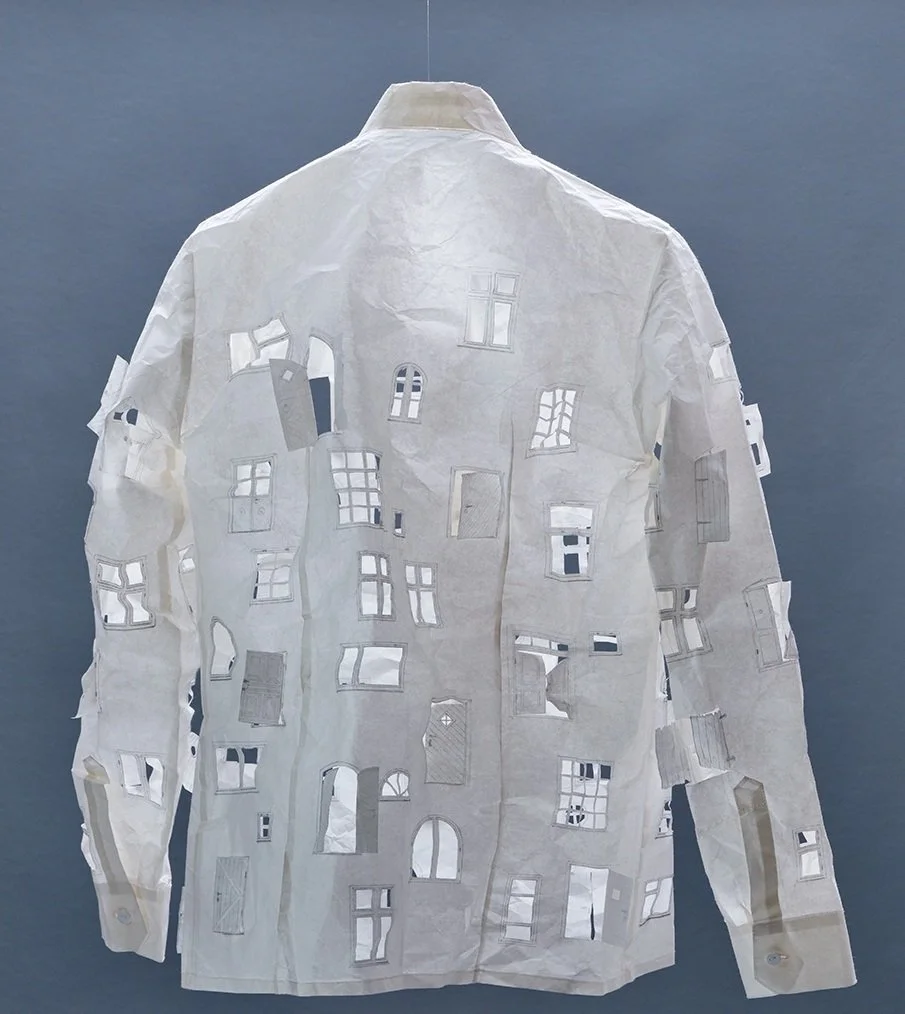 View fullsize View fullsize View fullsize Living in My Shirt2018Japanese Zairei paper, 34 g, white paper buttons, white thread, glue 60 x 42 x 17 cm Large paperworks
