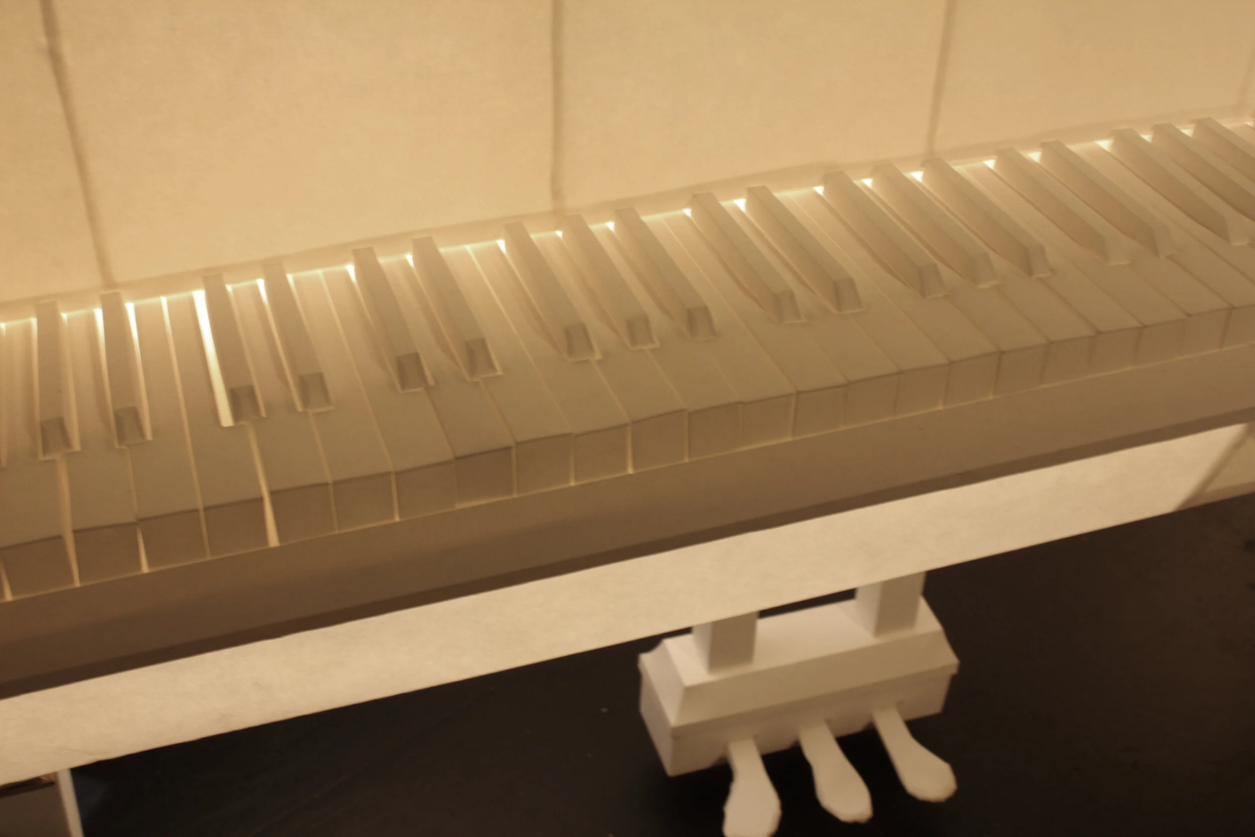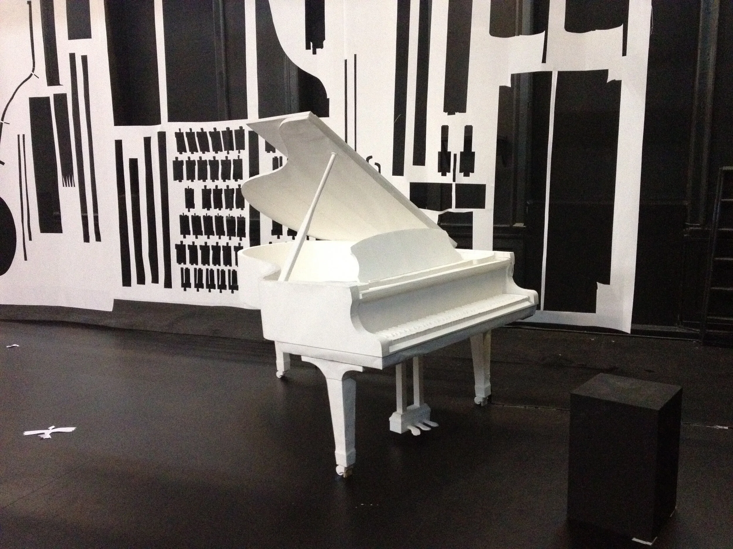Mirrored copy of real piano used as stage design for a theatre concert; Winterreise by Schubert